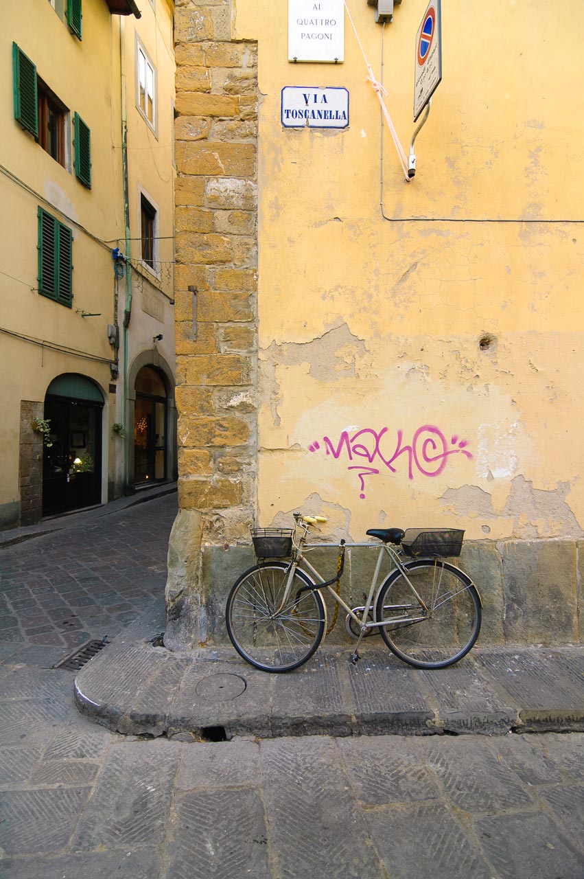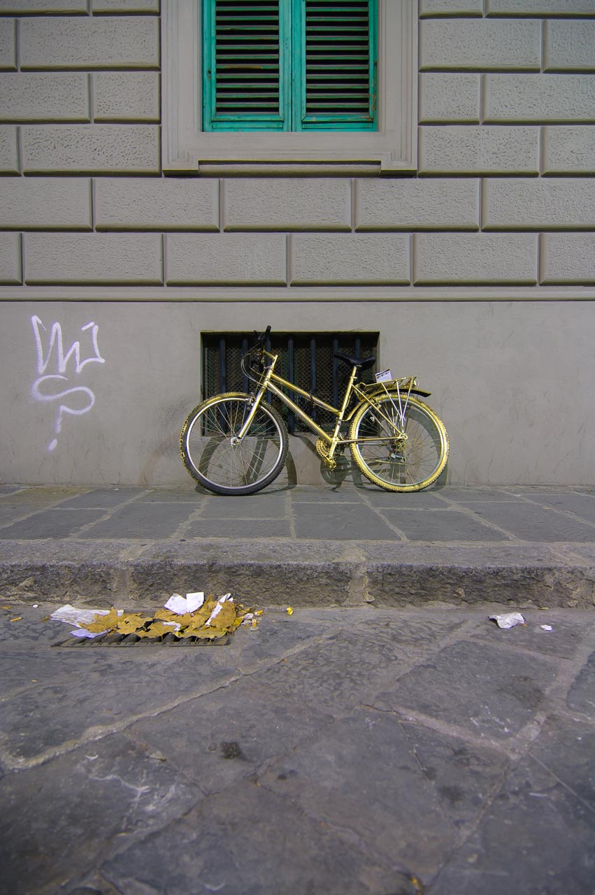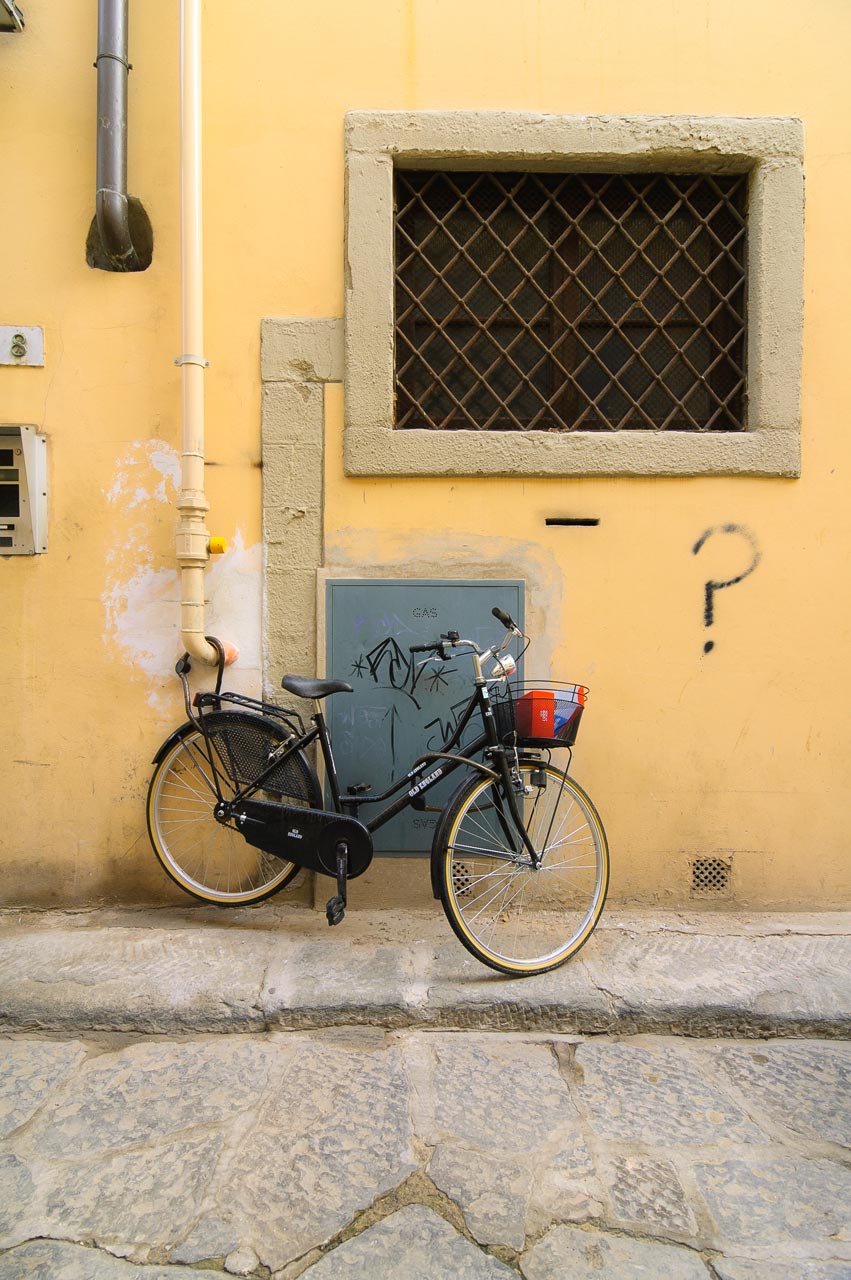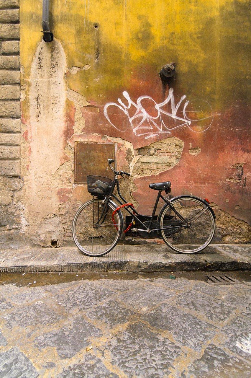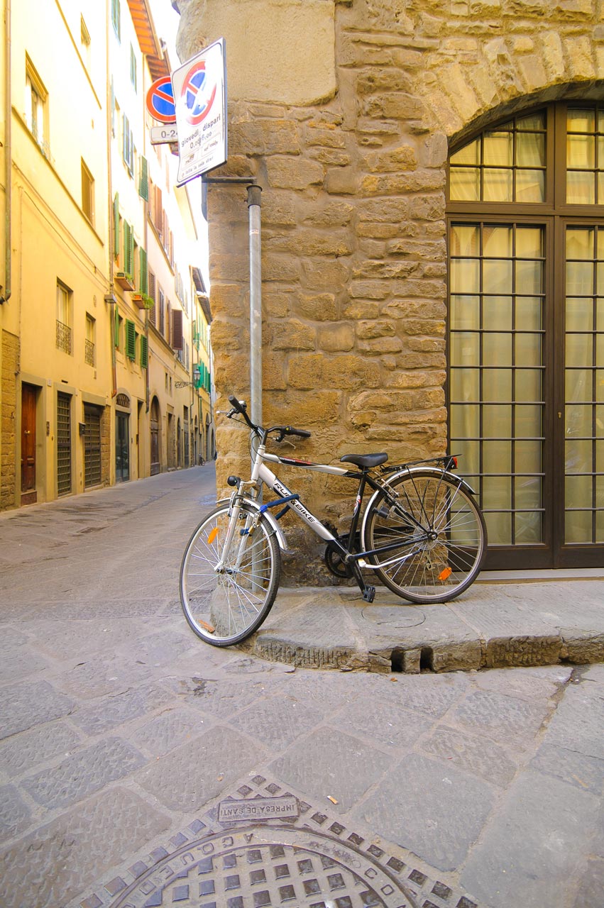 As an American in Florence, I was struck by the preponderance of bicycles. They are everywhere you turn, in all shapes and colors—some shiny and new, others stolen and repainted.
